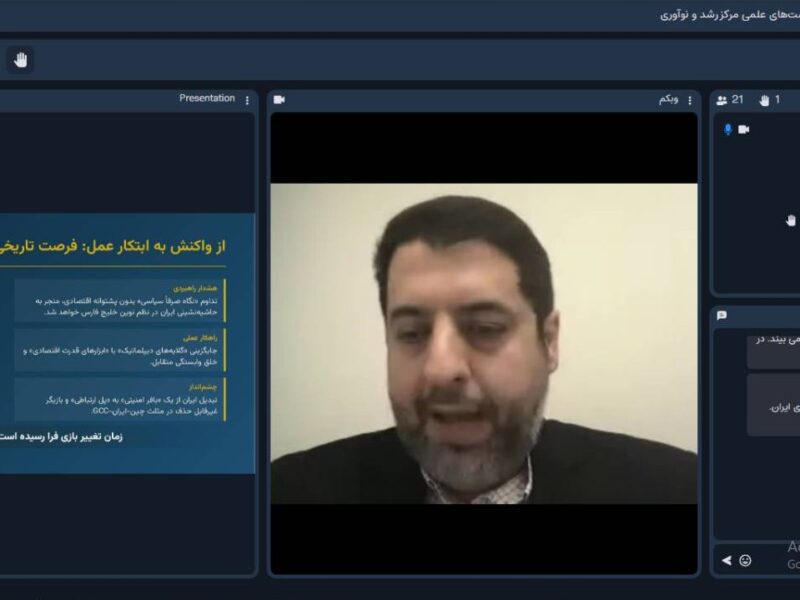 نشست روایتهای فرامرزی با عنوان «جزایر سهگانه ایران در بیانیه چین – امارات: چرخش چین و ابتکار عملهای راهبردی ایران» با ارائه دکتر مهدی یوسفی پژوهشگر دانشگاه هاینان چین روز پنجشنبه ۲۷ آذر ۱۴۰۴ در بستر اسکایروم مرکز رشد و نوآوری پژوهشگاه فرهنگ و اندیشه اسلامی برگزار شد. دکتر یوسفی با تأکید بر اینکه میبایست […]
