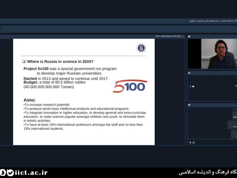 به گزارش روابط عمومی پژوهشگاه فرهنگ و اندیشه اسلامی، نشست دیگری از نشستهای روایتهای فرامرزی با عنوان “روایت بهاشتراکگذاری تجربیات آموزشی و پژوهشی روانشناسی و روانسنجی در فدراسیون روسیه: تأکید بر مرجعیت علمی و حکمرانی در علوم انسانی و اجتماعی” با ارائه دکتر مرتضی چرخآبی (عضو هیأت علمی در مؤسسه آموزش مدرسه عالی اقتصاد دانشگاه پژوهشهای […]