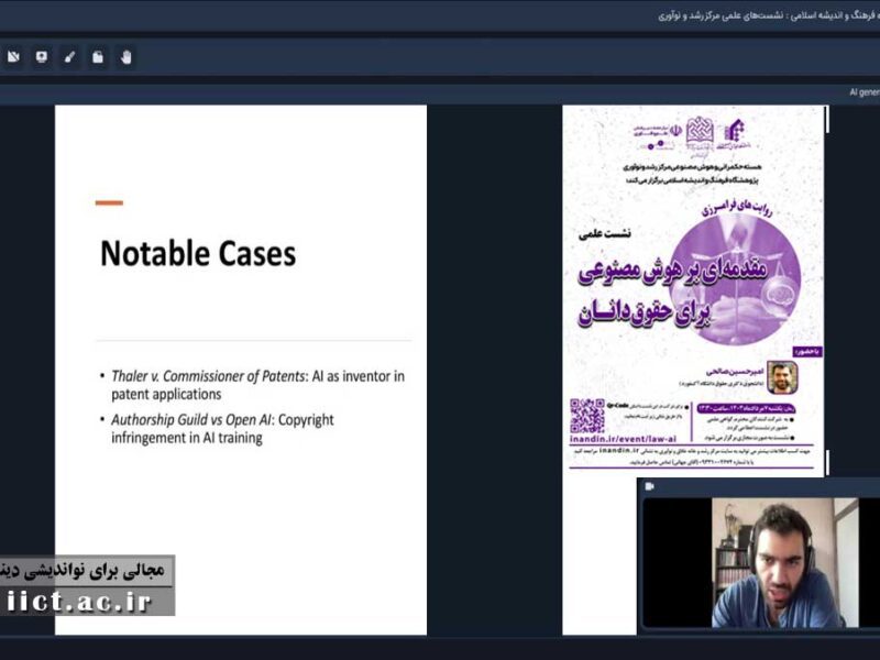 به گزارش روابط عمومی پژوهشگاه فرهنگ و اندیشه اسلامی، نشست «درآمدی بر حقوق مالکیت فکری در هوش مصنوعی: چه کسی مالک آثار تولیدشده توسط هوش مصنوعی است؟» با ارائه امیرحسین صالحی دانشجوی دکتری حقوق دانشگاه آکسفورد روز یکشنبه ۲۱ مرداد ۱۴۰۳ به صورت برخط در اسکایروم برگزار شد. این نشست را مرکز رشد و نوآوری پژوهشگاه […]