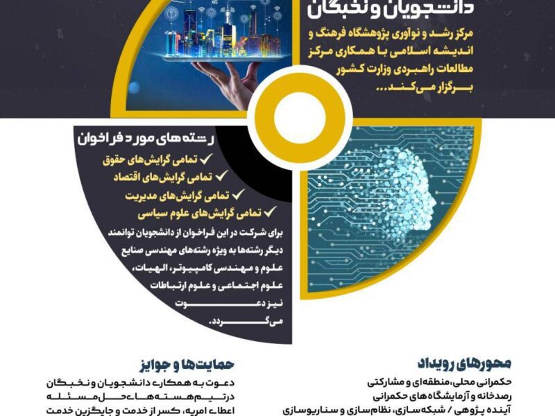 مرکز رشد و نوآوری پژوهشگاه فرهنگ و اندیشه اسلامی با همکاری مرکز مطالعات راهبردی وزارت کشور برگزار میکند. محورهای فراخوان حکمرانی محلی، منطقهای و مشارکتی آیندهپژوهی، شبکهسازی و سناریو سازی ابزارها و نظامهای حکمرانی رصدخانه و آزمایشگاه حکمرانی حکمرانی هوشمند و حکمرانی داده رشتههای مورد فراخوان تمامی گرایشهای رشته حقوق تمامی گرایشهای رشته اقتصاد […]